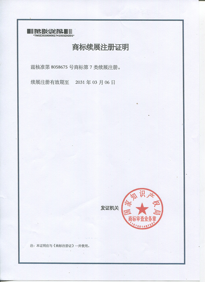 下列各式商標為本公司于大陸取得之商標注冊,僅授權太倉市塑寶環保機械及增城市升展機械公司使用,其余非經我司書面許可而濫用者,本公司將采取法律行動,追索侵權之損害賠償。
